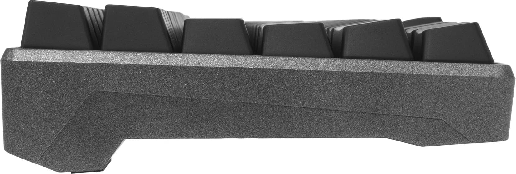 Dit toetsenbord maakt gebruik van een unieke lay-out en heeft dus verder ook geen numberpad en macro of multimedia toetsen. Hij heeft alleen de toetsen die je ECHT nodig hebt. Zo wordt er zoveel mogelijk ruimte bespaart.